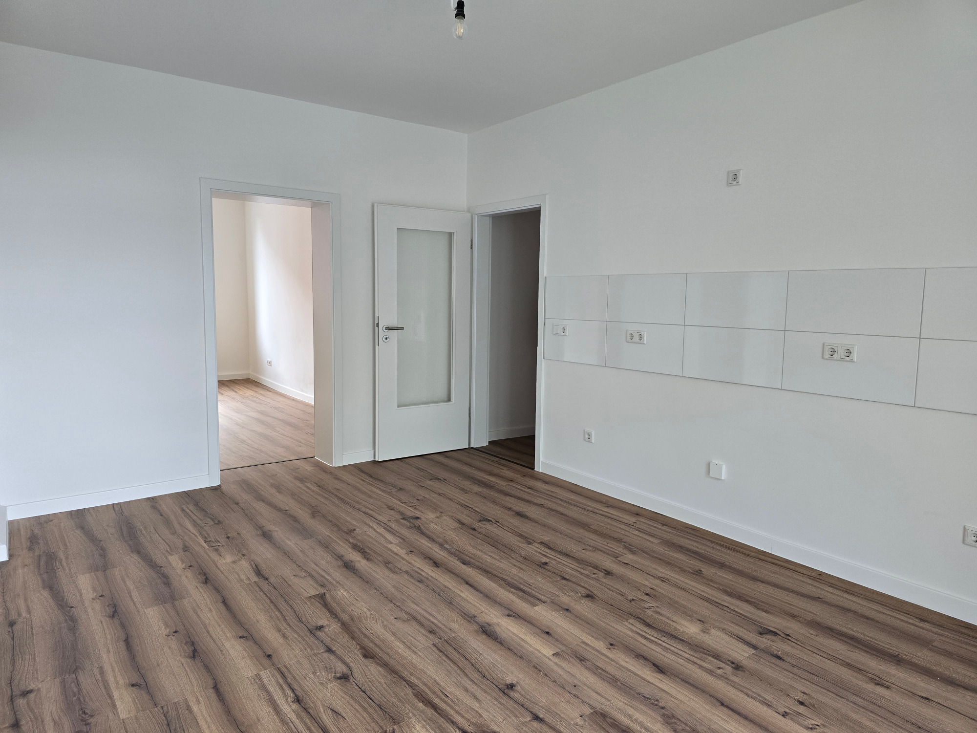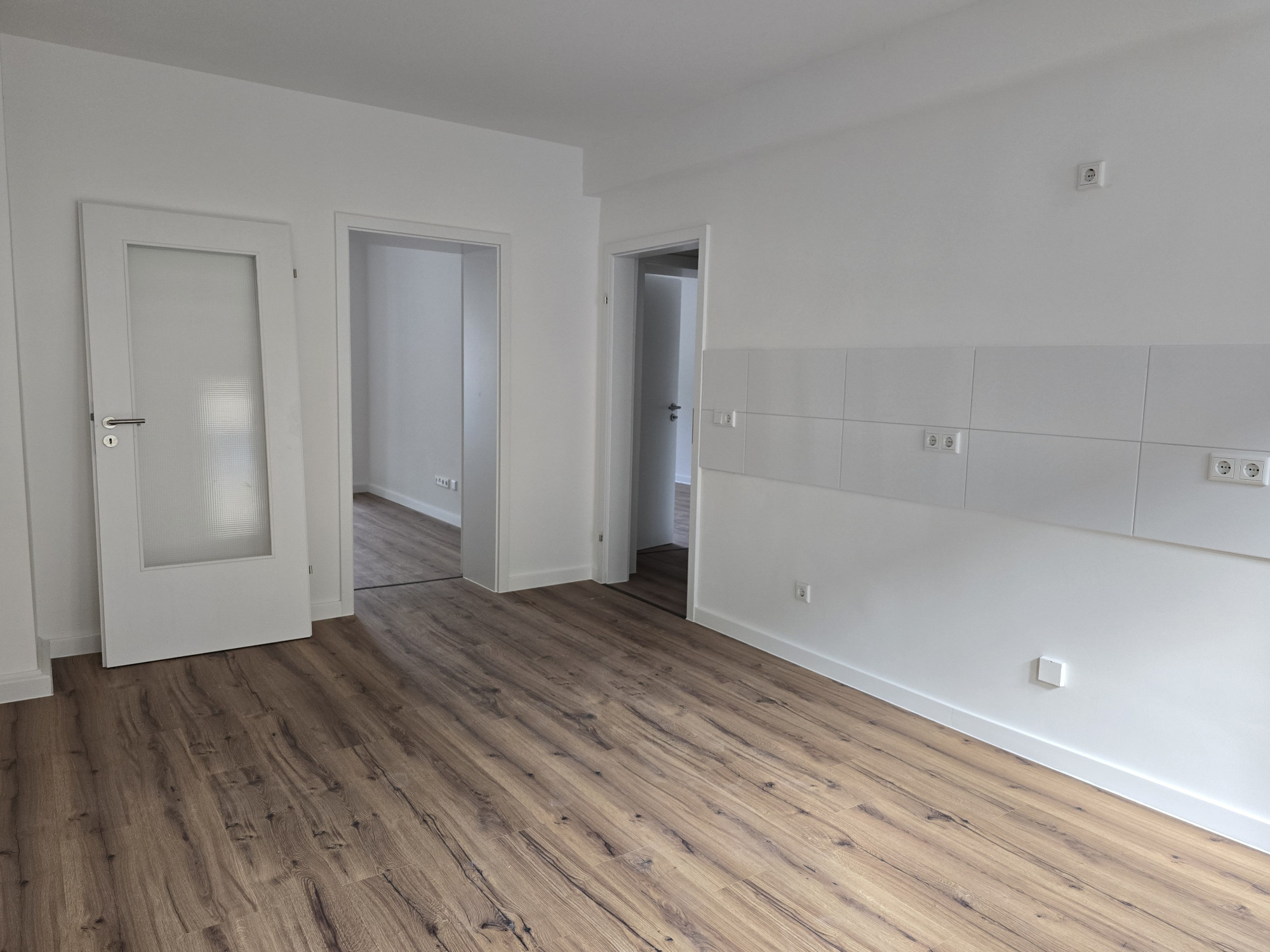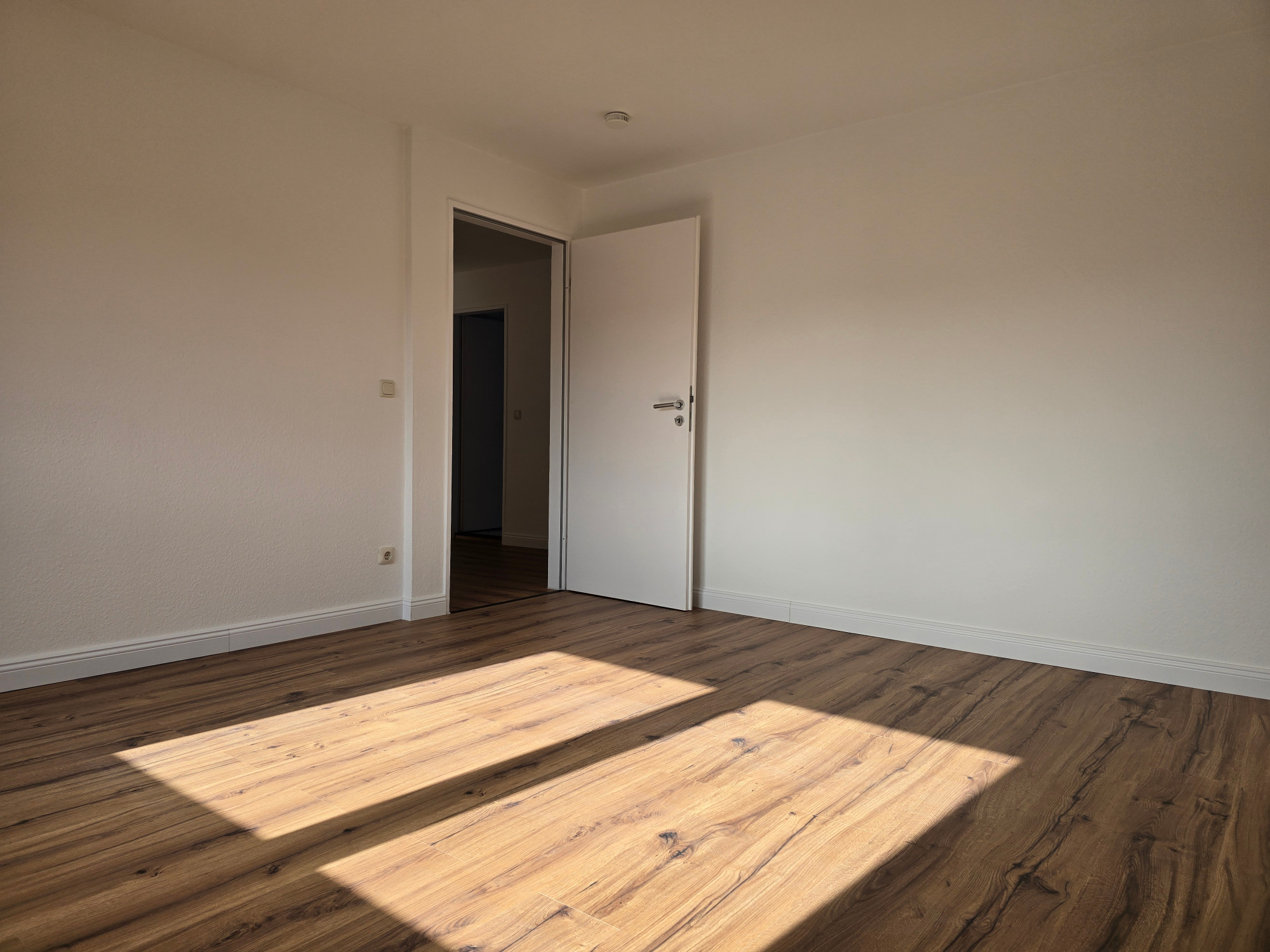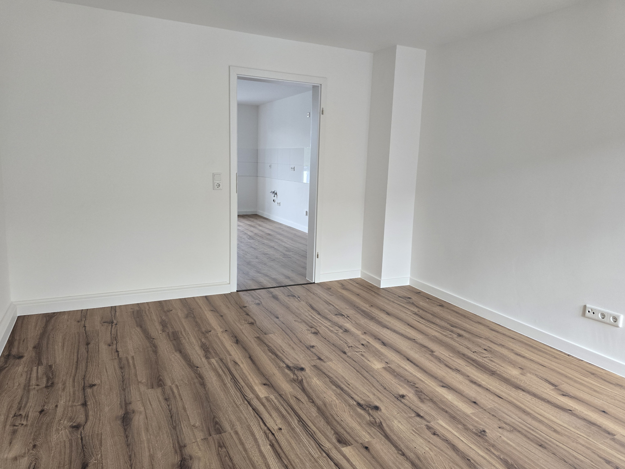 Diese frisch geweißte Wohnung vereint modernes Wohnen mit behaglichem Ambiente. Hochwertiger Laminatboden in allen Wohnräumen verleiht ein elegantes und pflegeleichtes Wohngefühl.