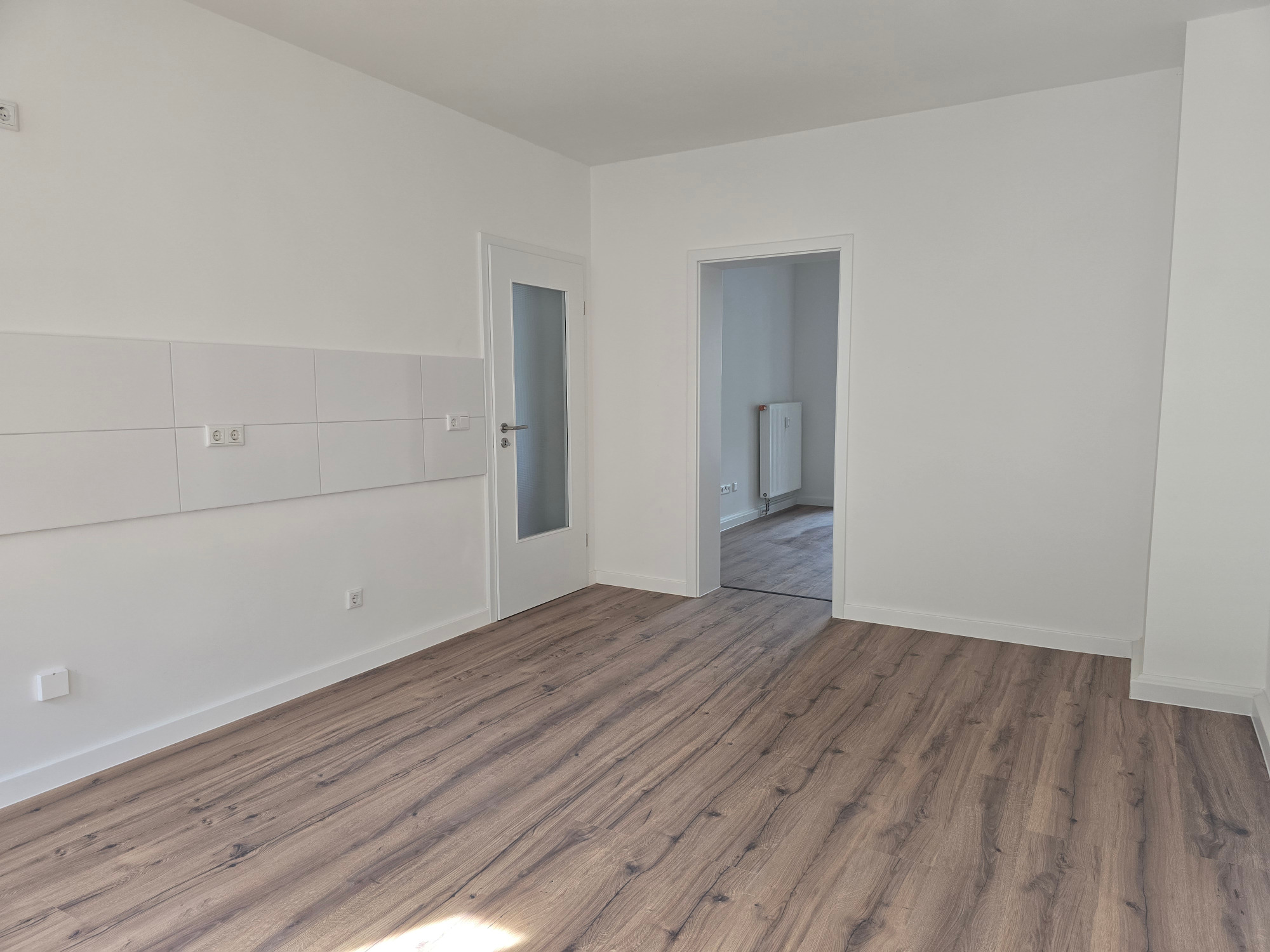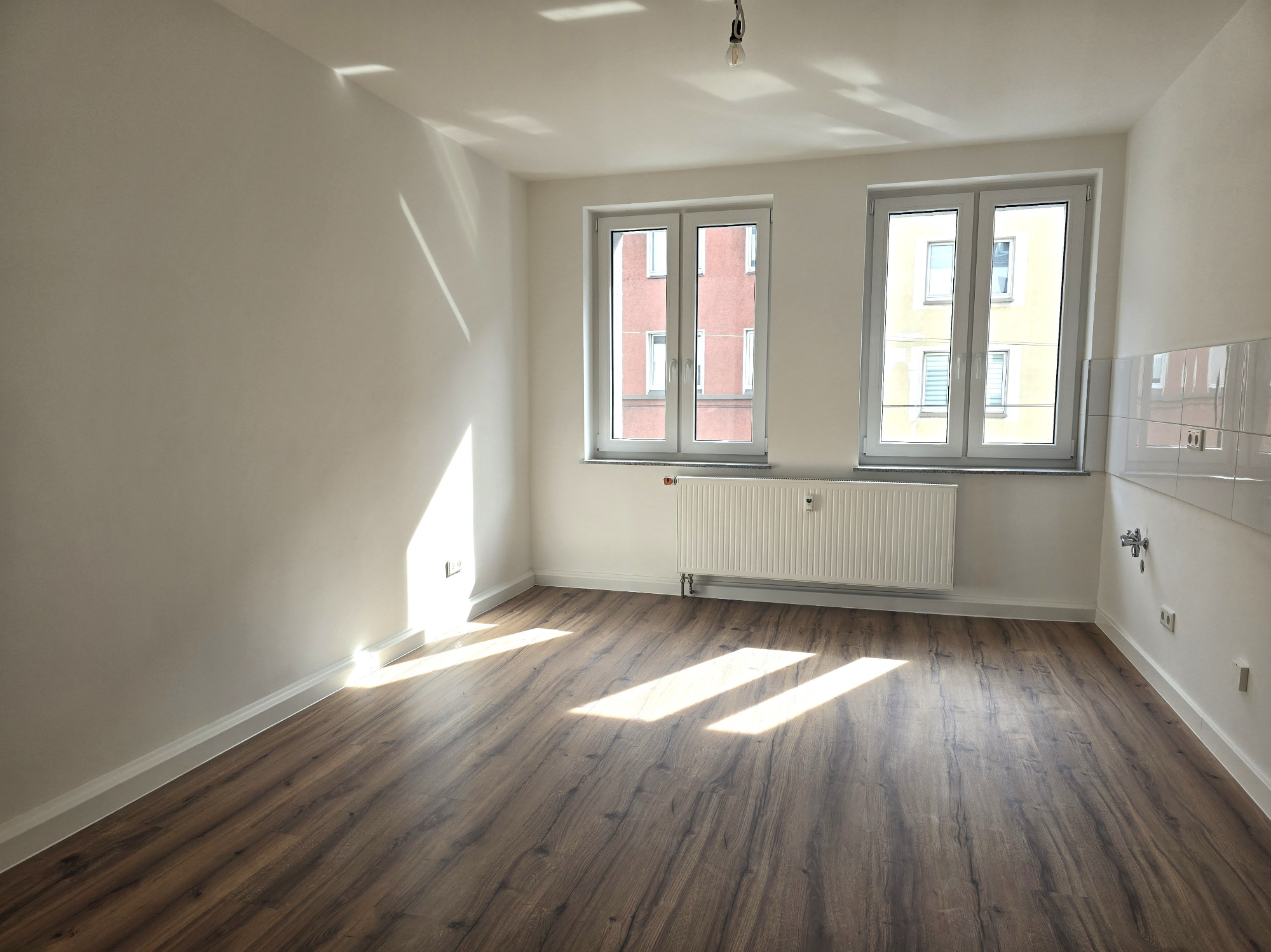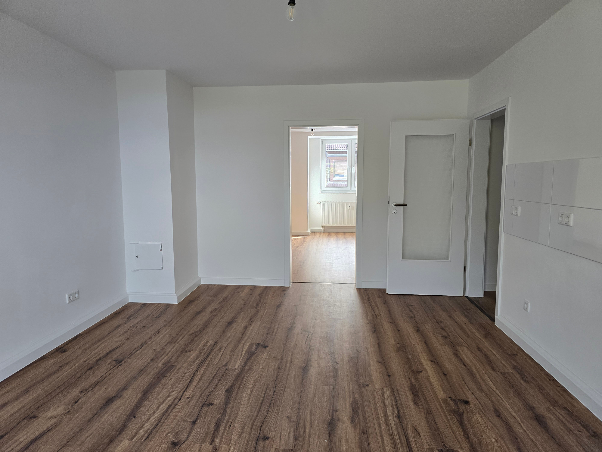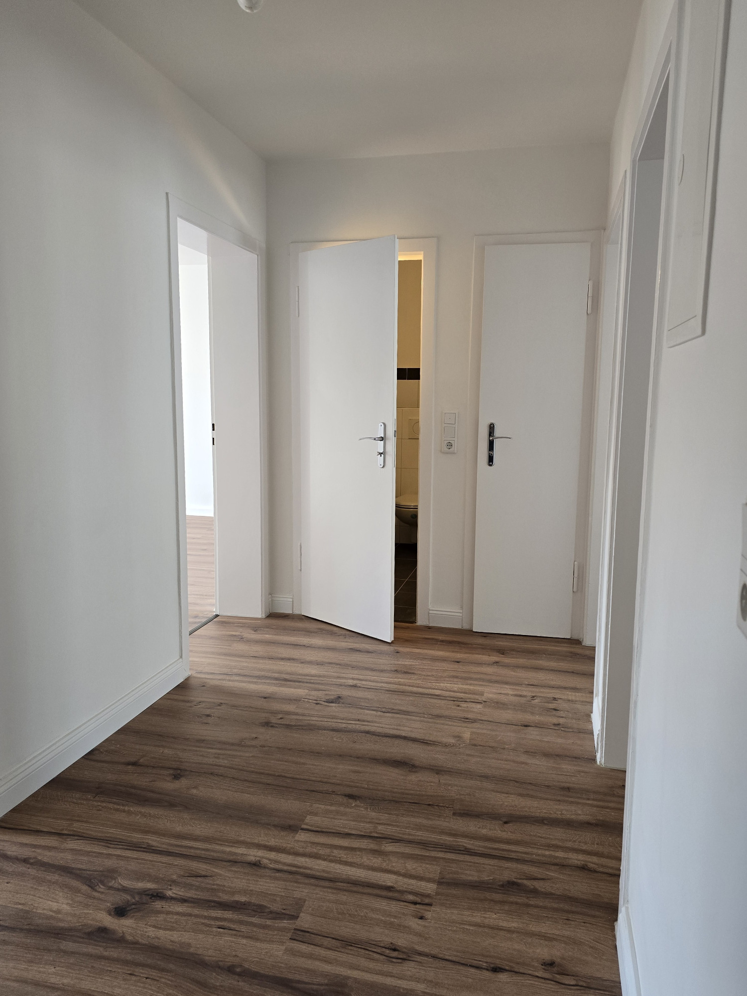 Diese frisch geweißte Wohnung vereint modernes Wohnen mit behaglichem Ambiente. Hochwertiger Laminatboden in allen Wohnräumen verleiht ein elegantes und pflegeleichtes Wohngefühl.