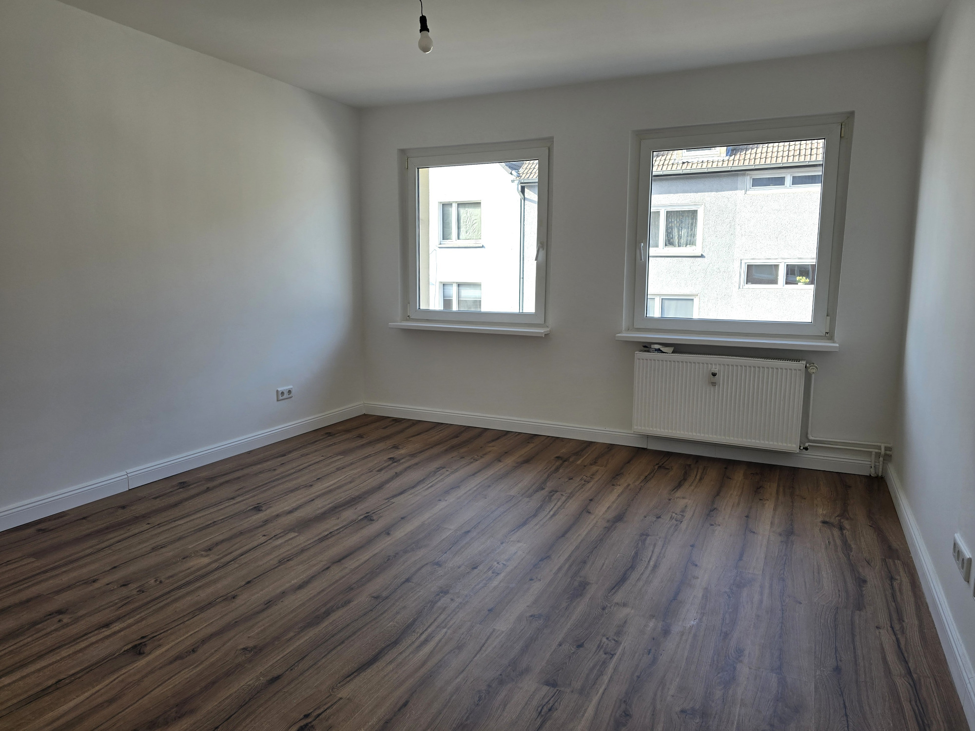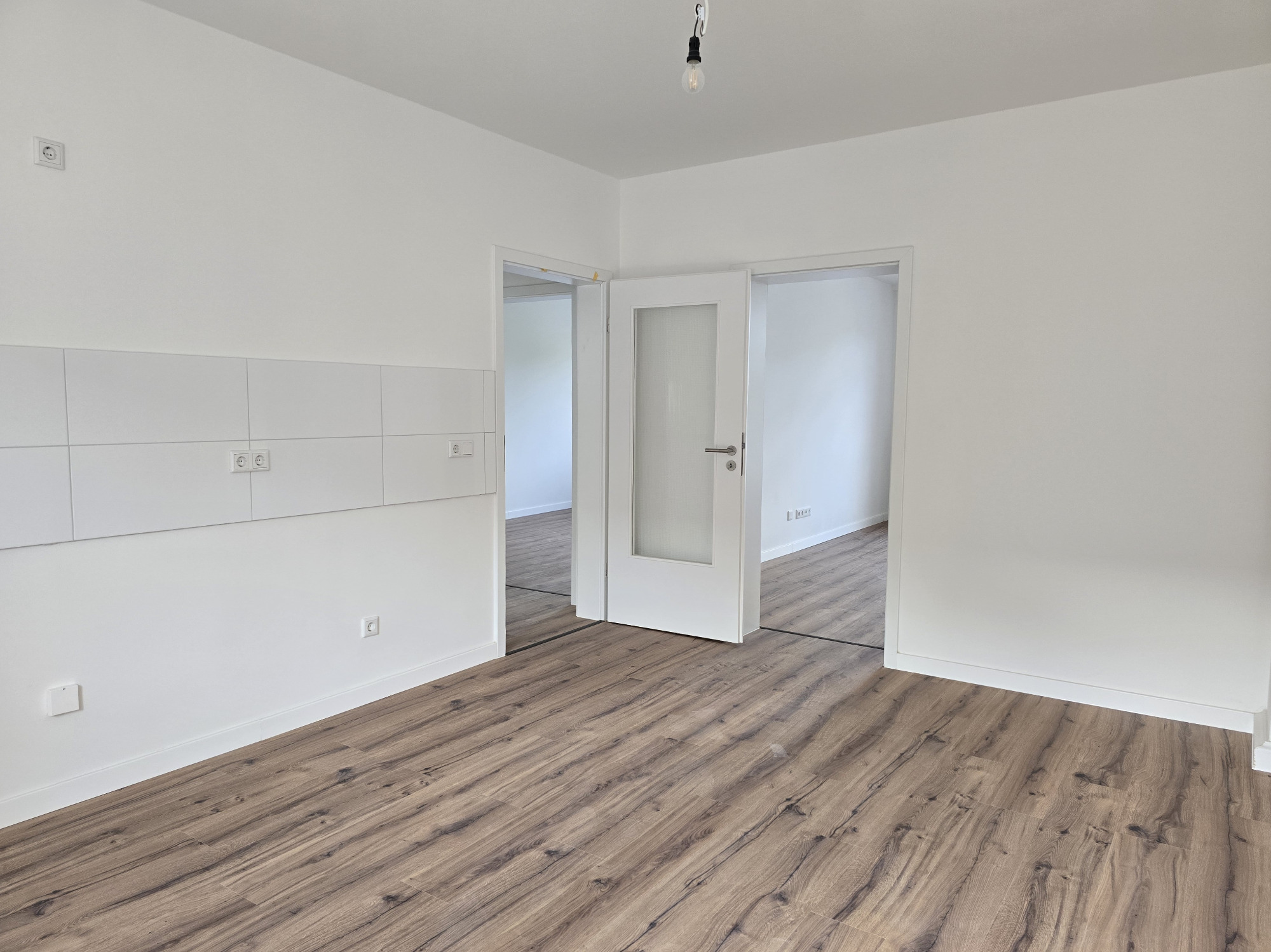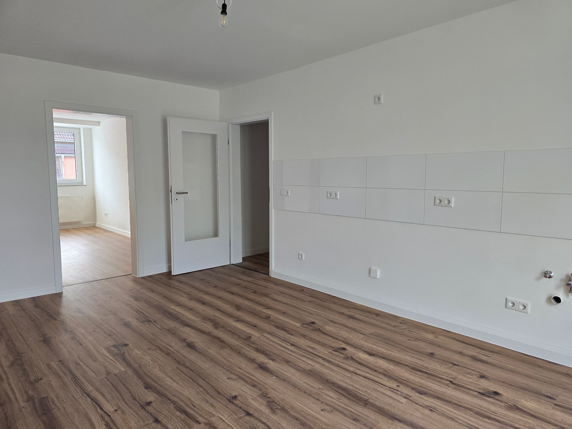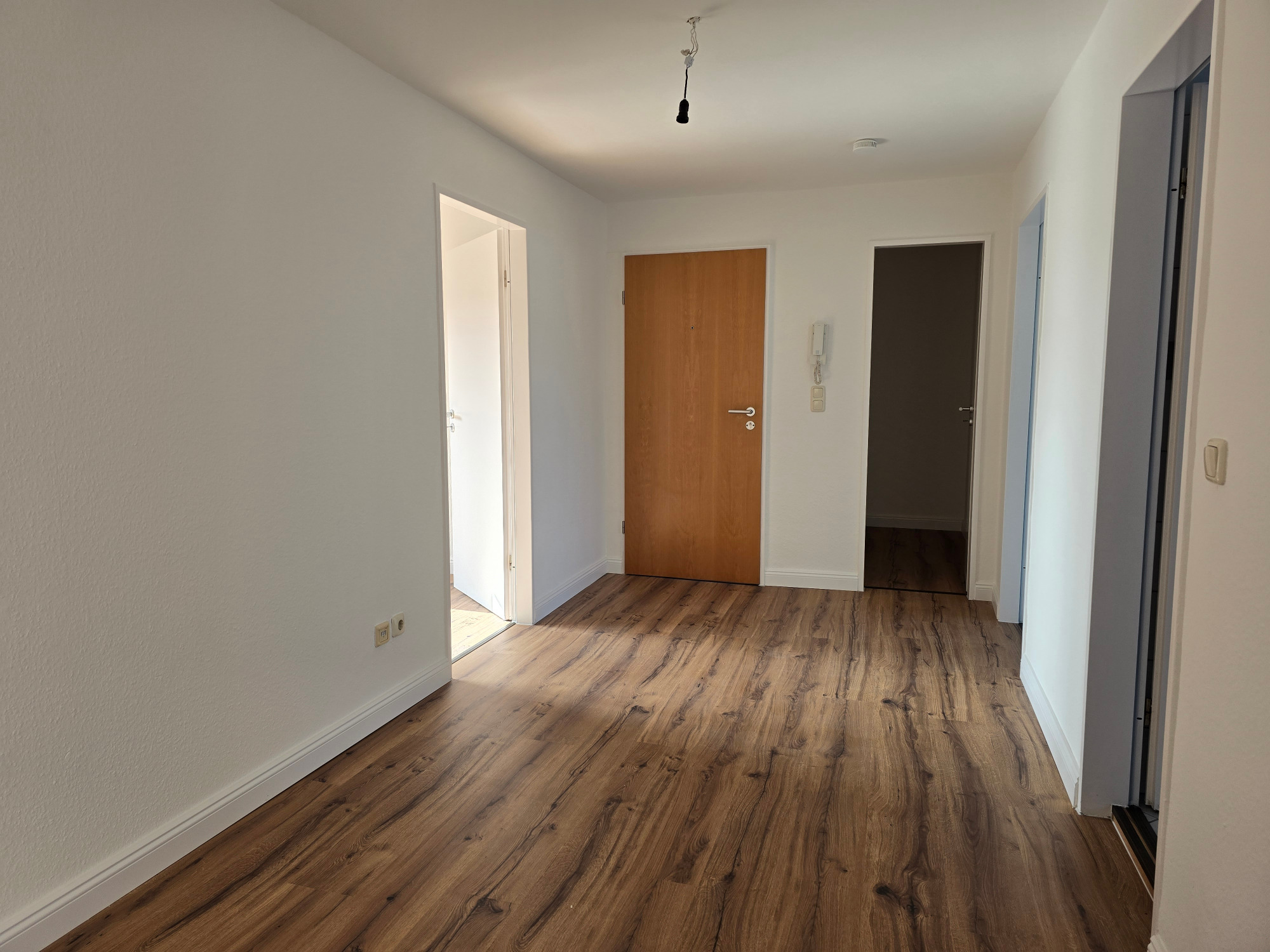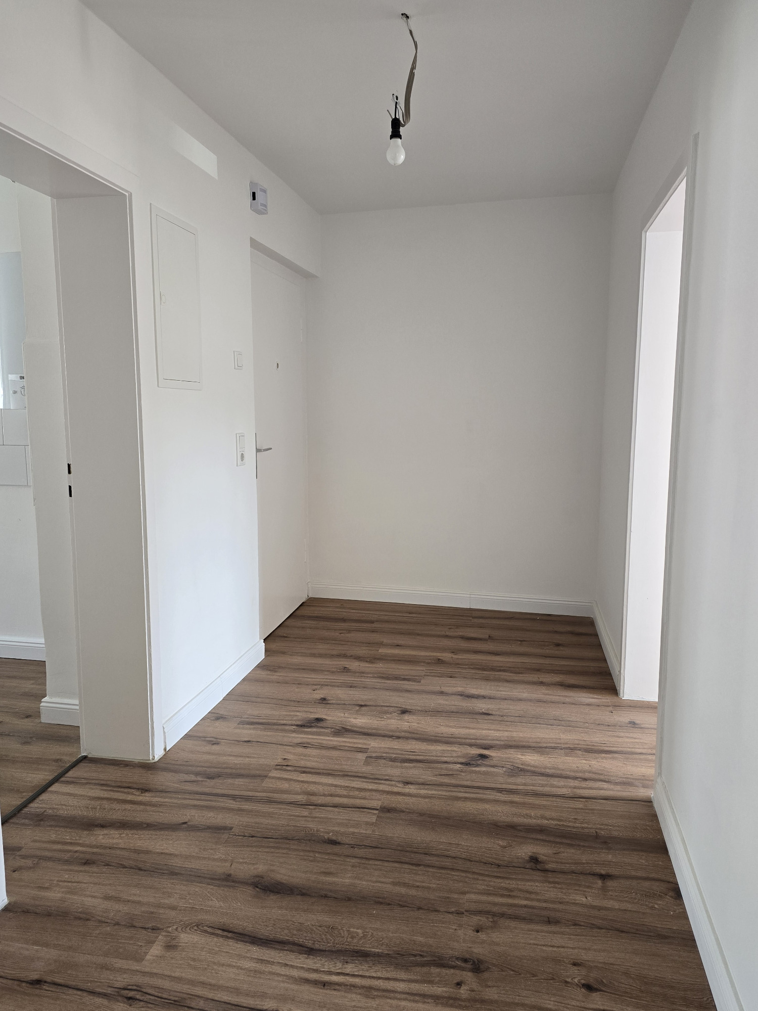 Diese frisch geweißte Wohnung vereint modernes Wohnen mit behaglichem Ambiente. Hochwertiger Laminatboden in allen Wohnräumen verleiht ein elegantes und pflegeleichtes Wohngefühl.