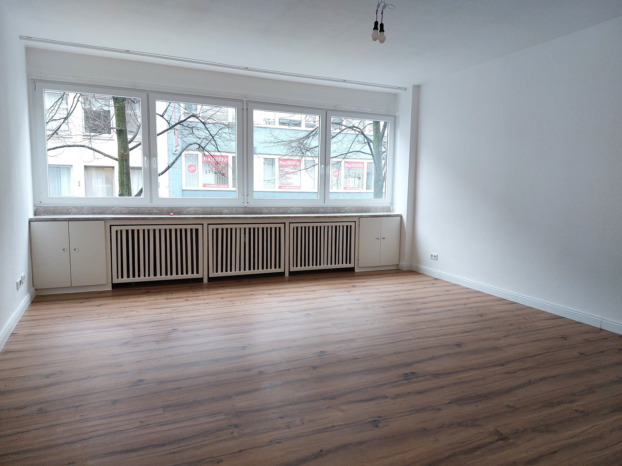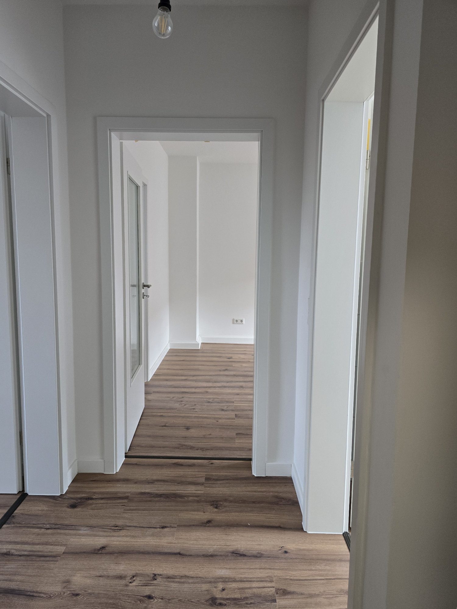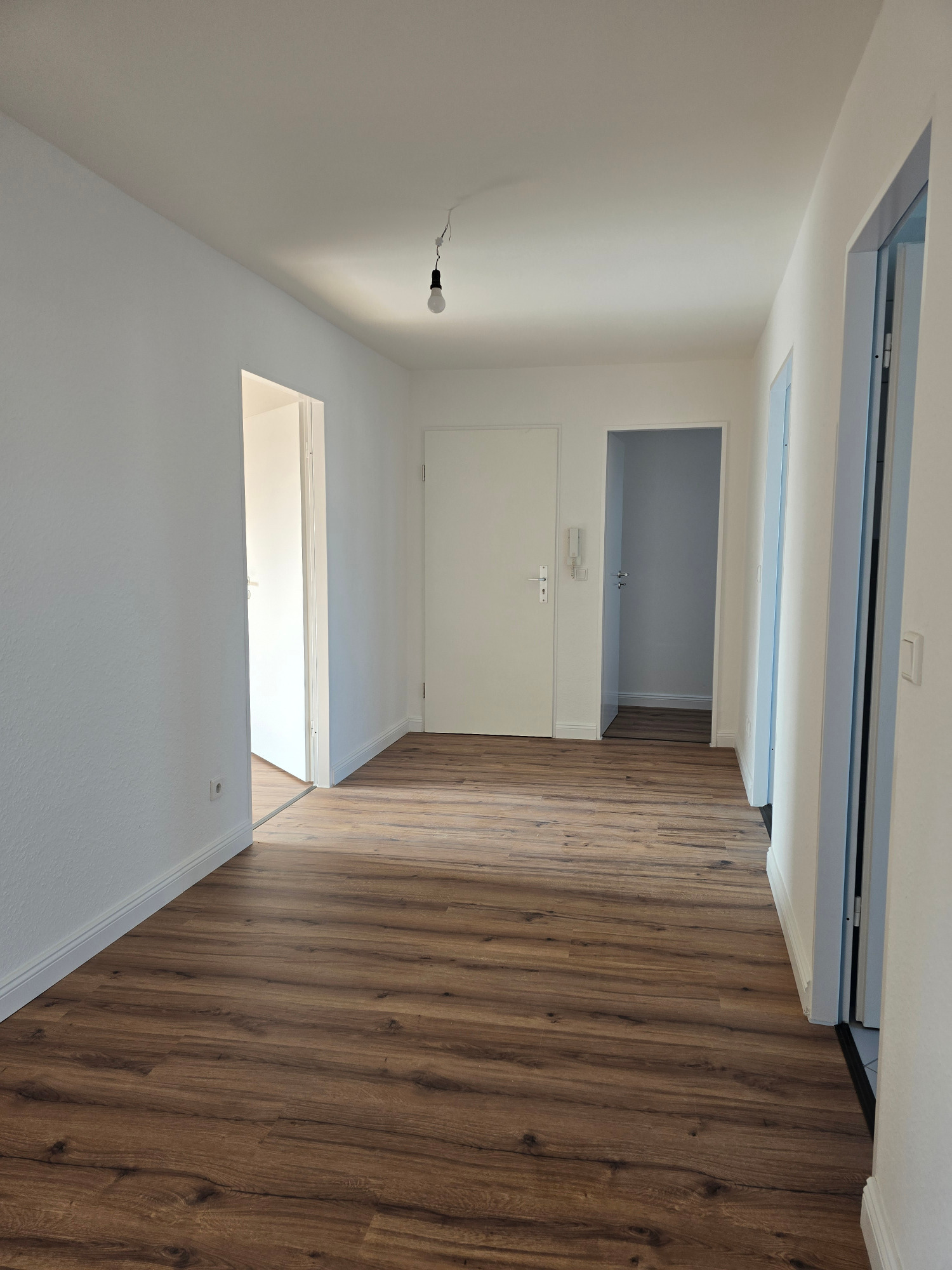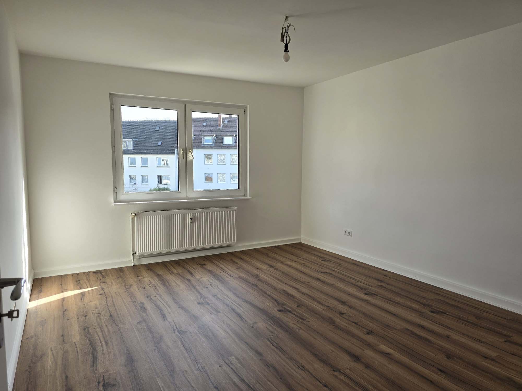 Diese frisch geweißte Wohnung vereint modernes Wohnen mit behaglichem Ambiente. Hochwertiger Laminatboden in allen Wohnräumen verleiht ein elegantes und pflegeleichtes Wohngefühl.