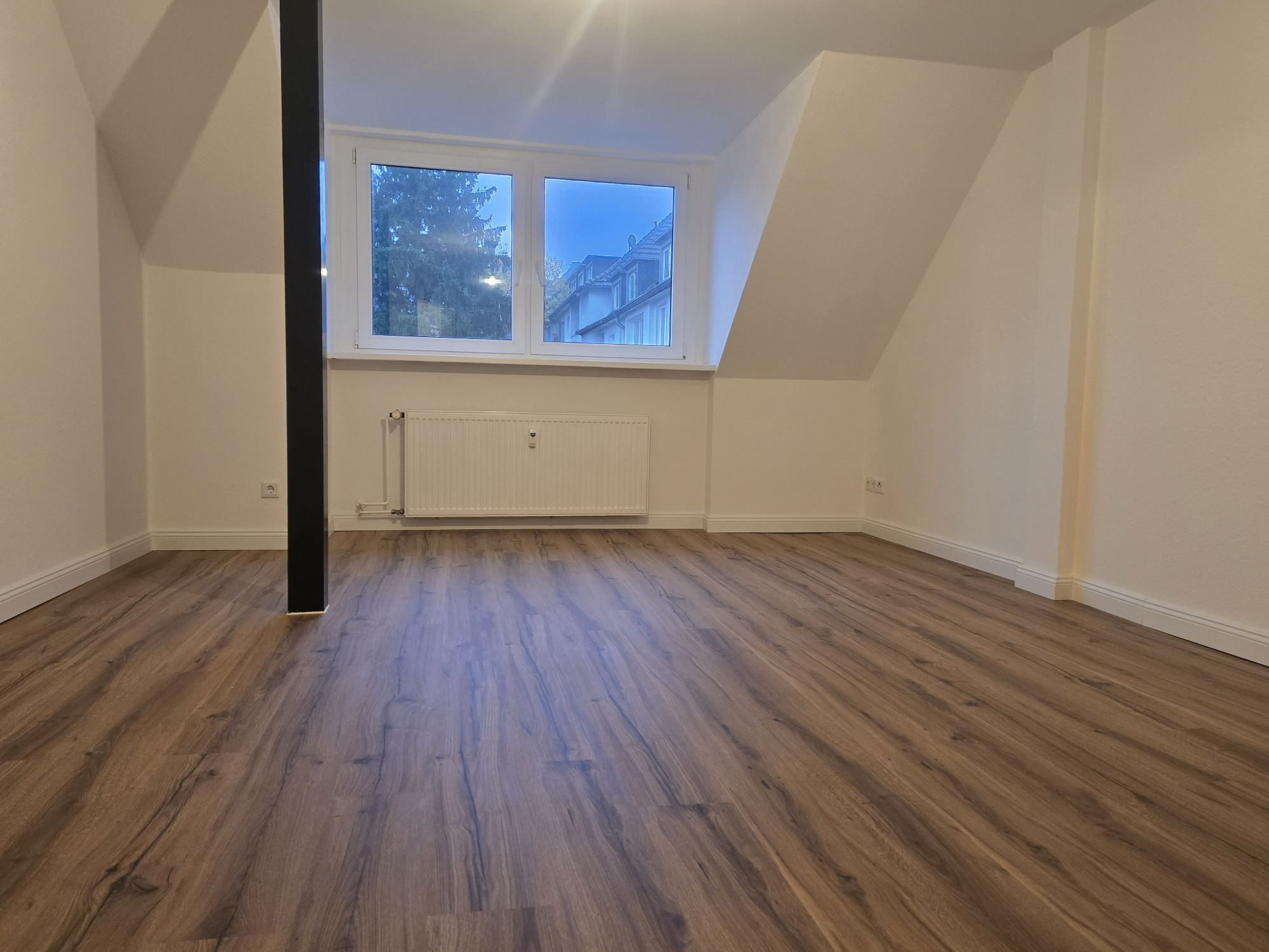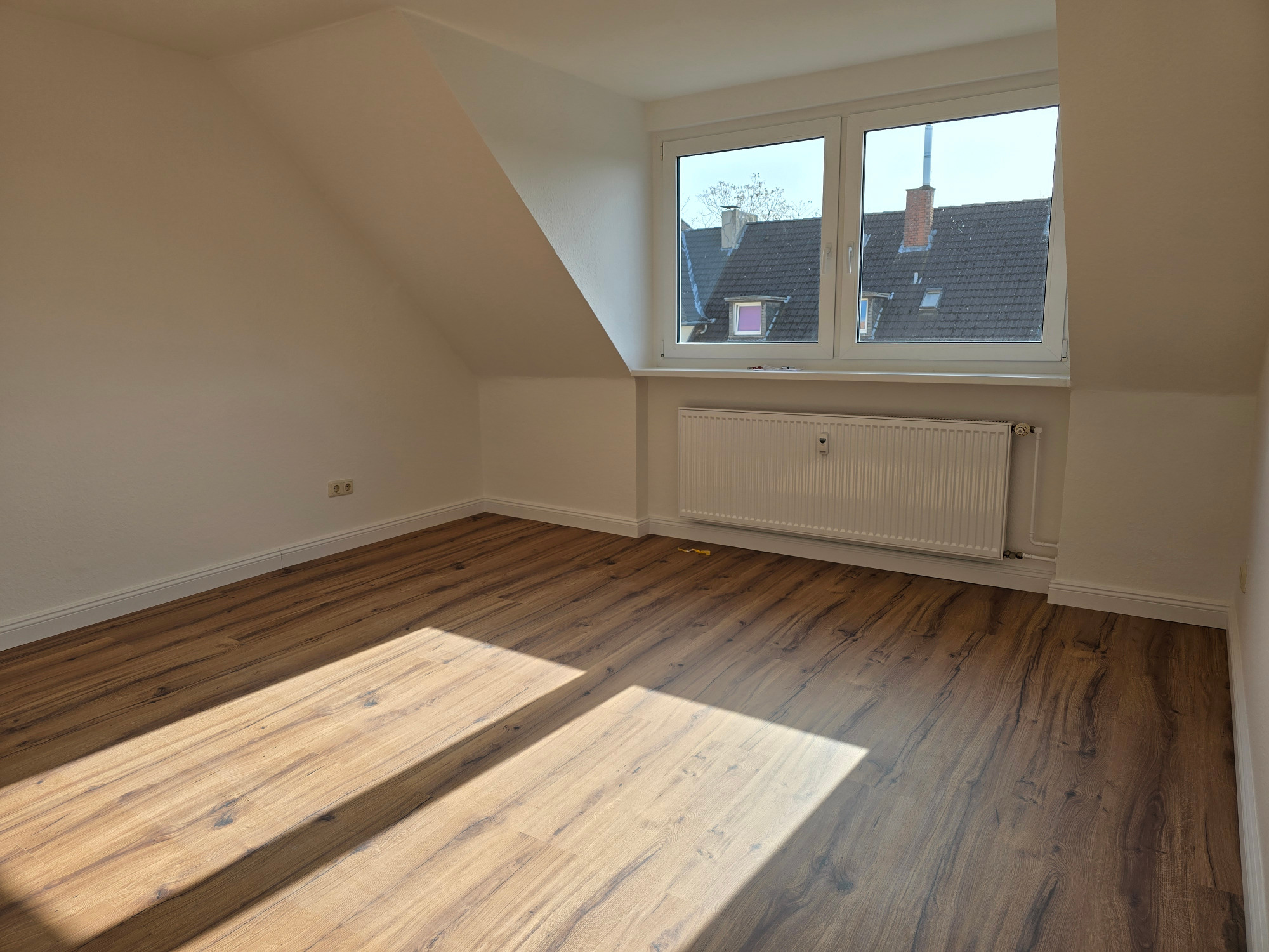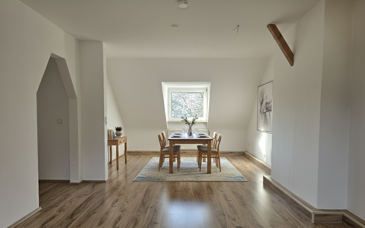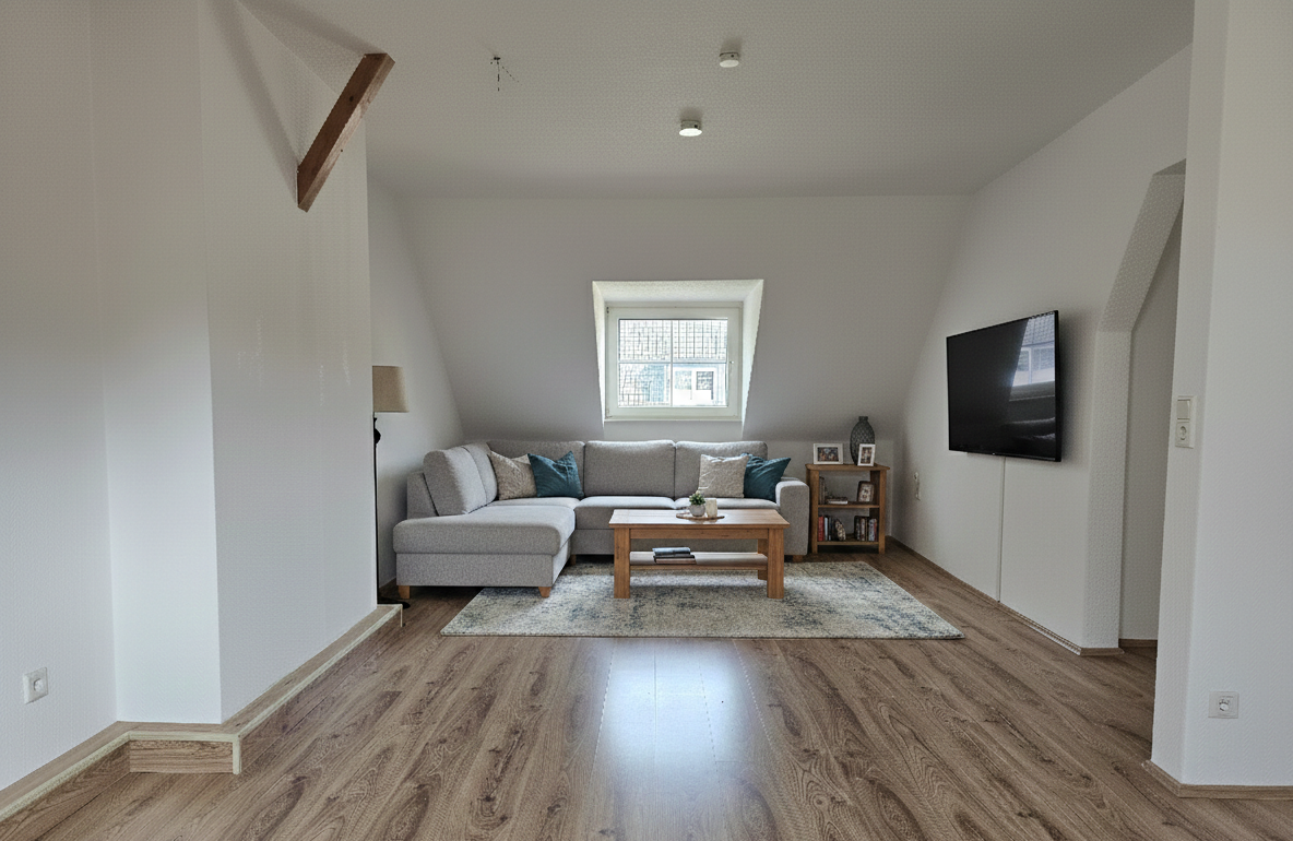 Diese wunderschöne, ca. 34 m² große Dachgeschosswohnung präsentiert sich nach einer umfassenden und kompletten Haus- und Wohnungssanierung in erstklassigem Zustand. Hier erwartet Sie ein modernes Zuhause mit hochwertiger Ausstattung und gemütlichem Wohnambiente.