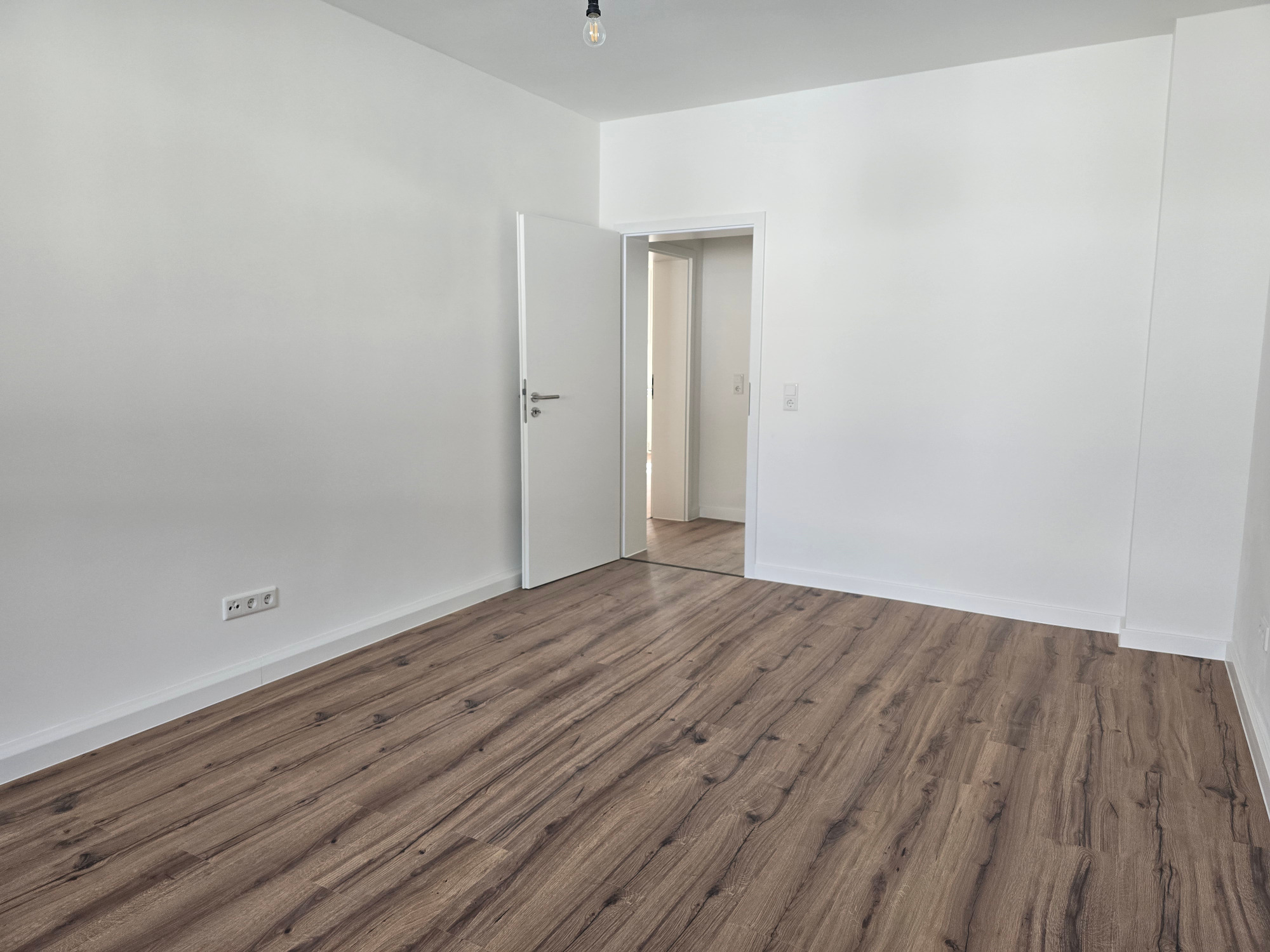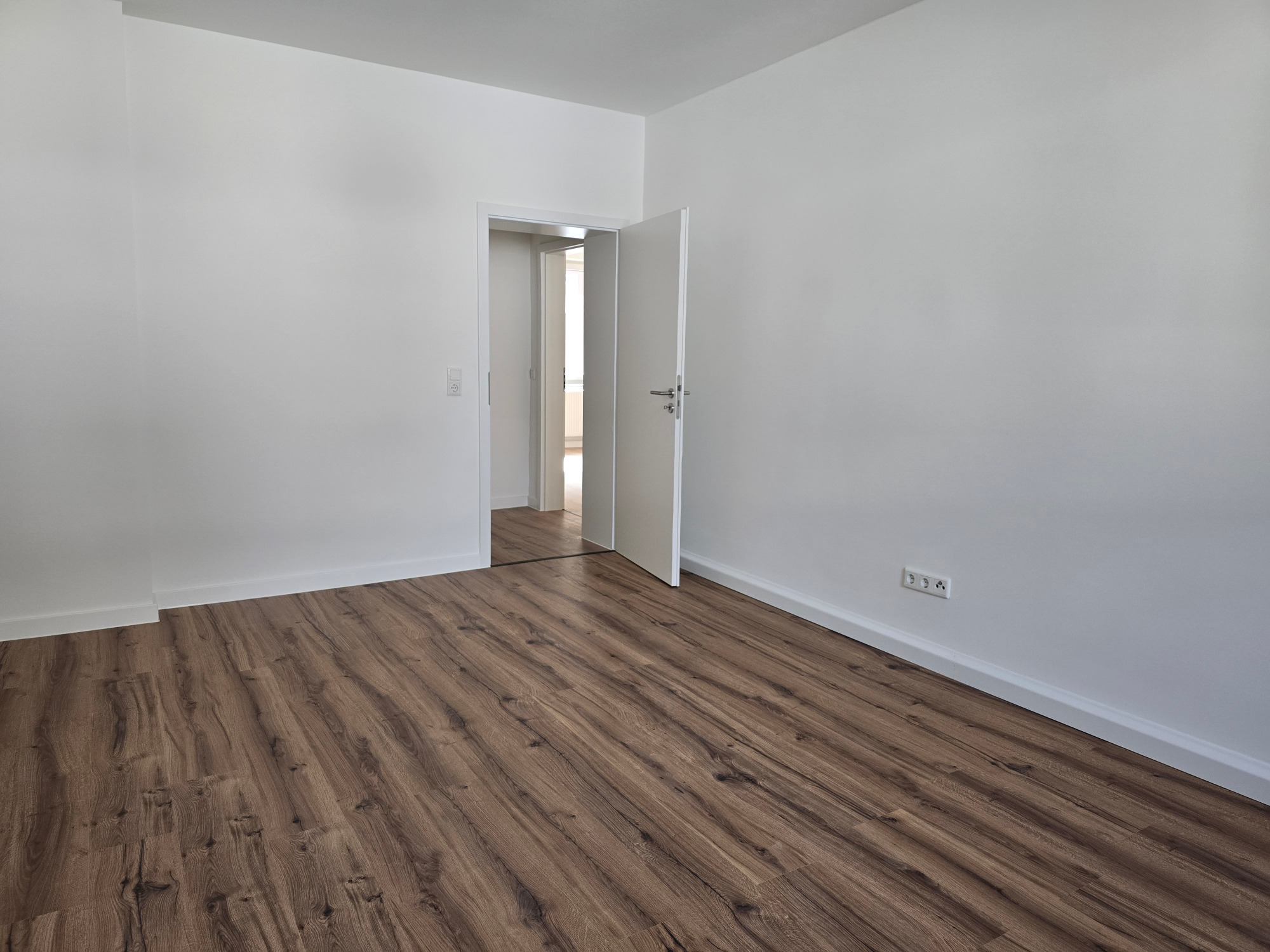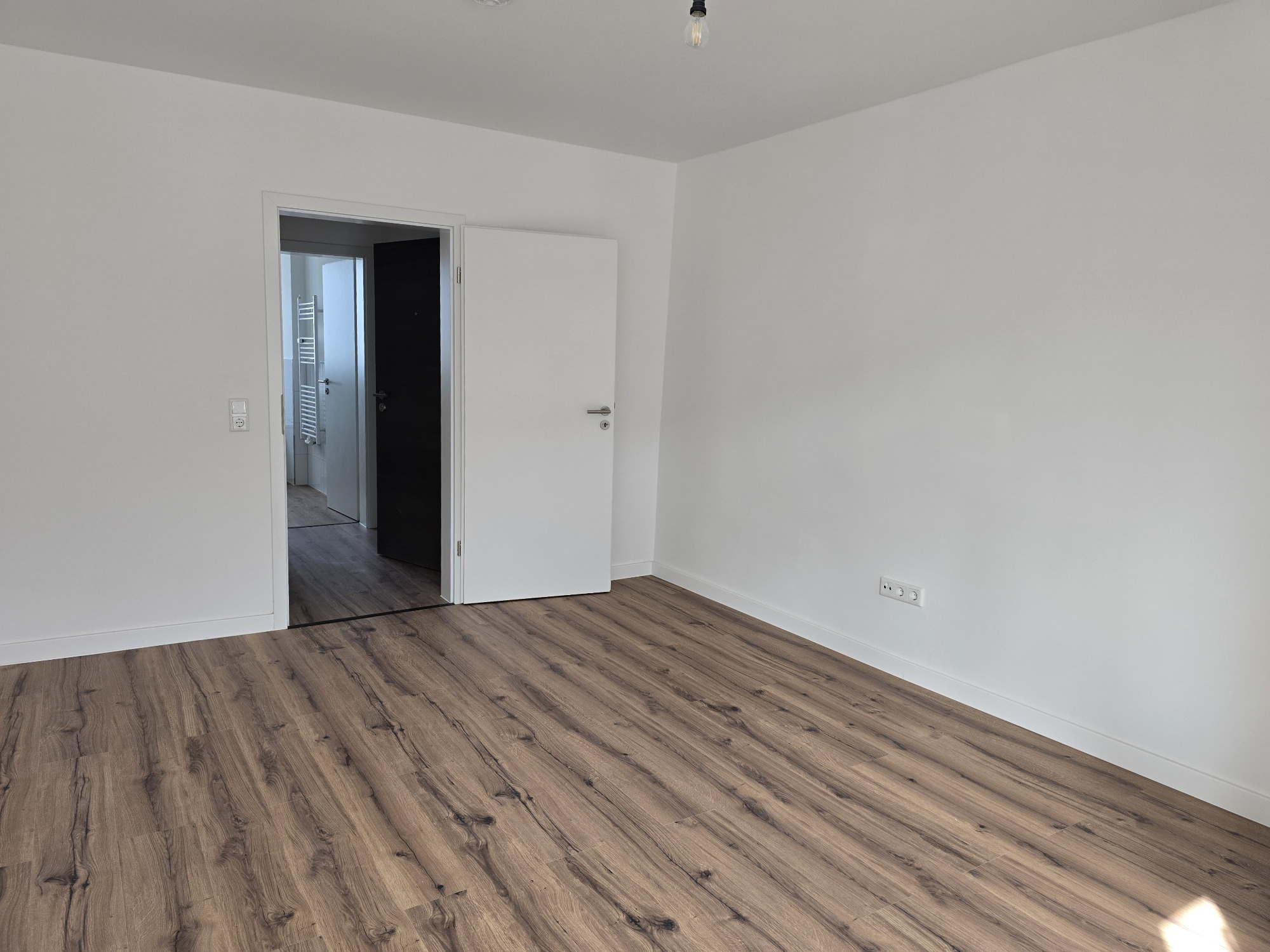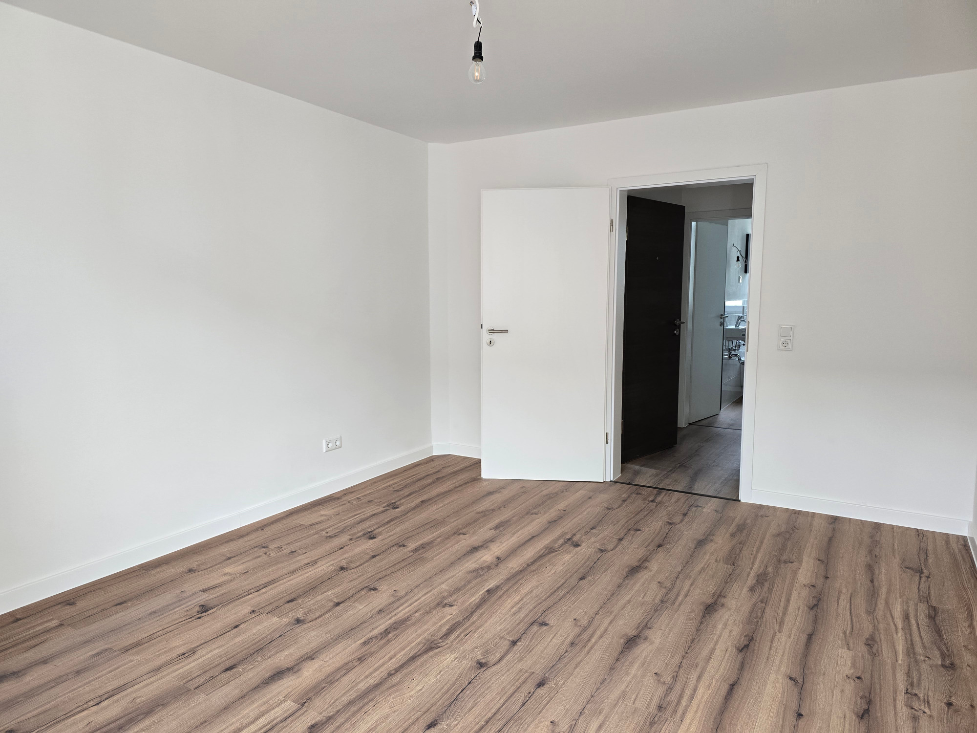 Der hochwertige Laminatboden zieht sich harmonisch durch die gesamte Wohnung und verleiht allen Räumen eine moderne, warme Atmosphäre.