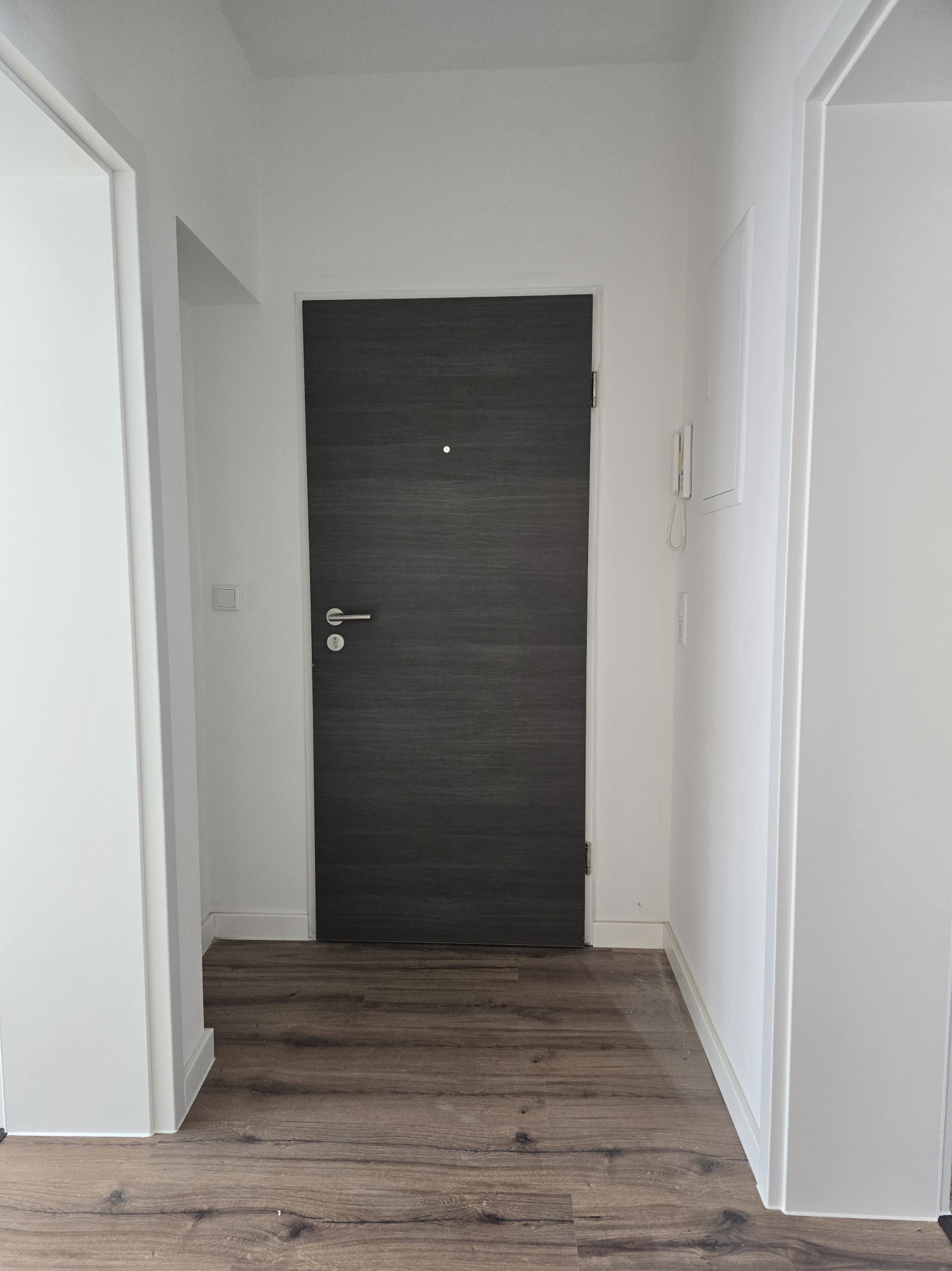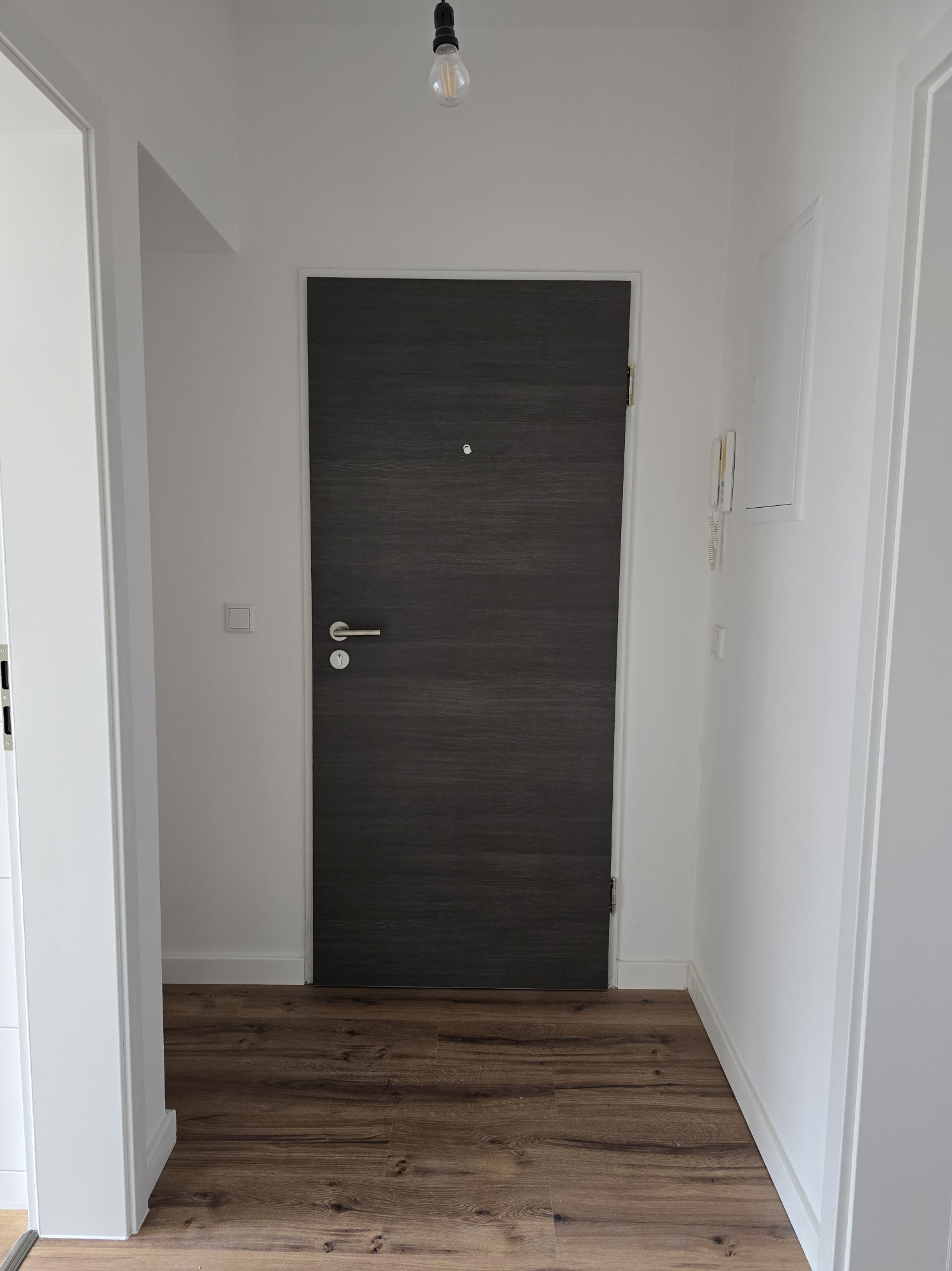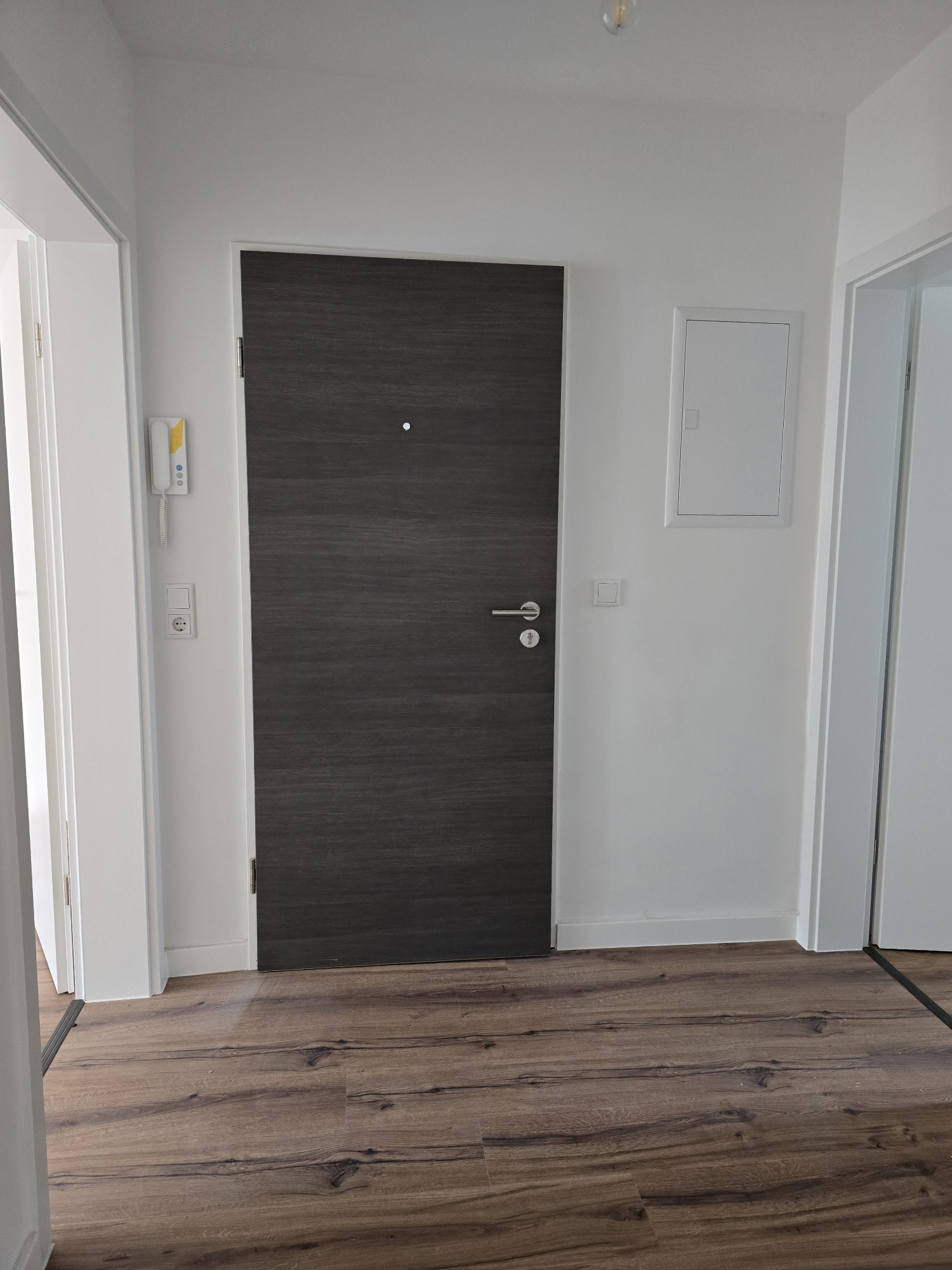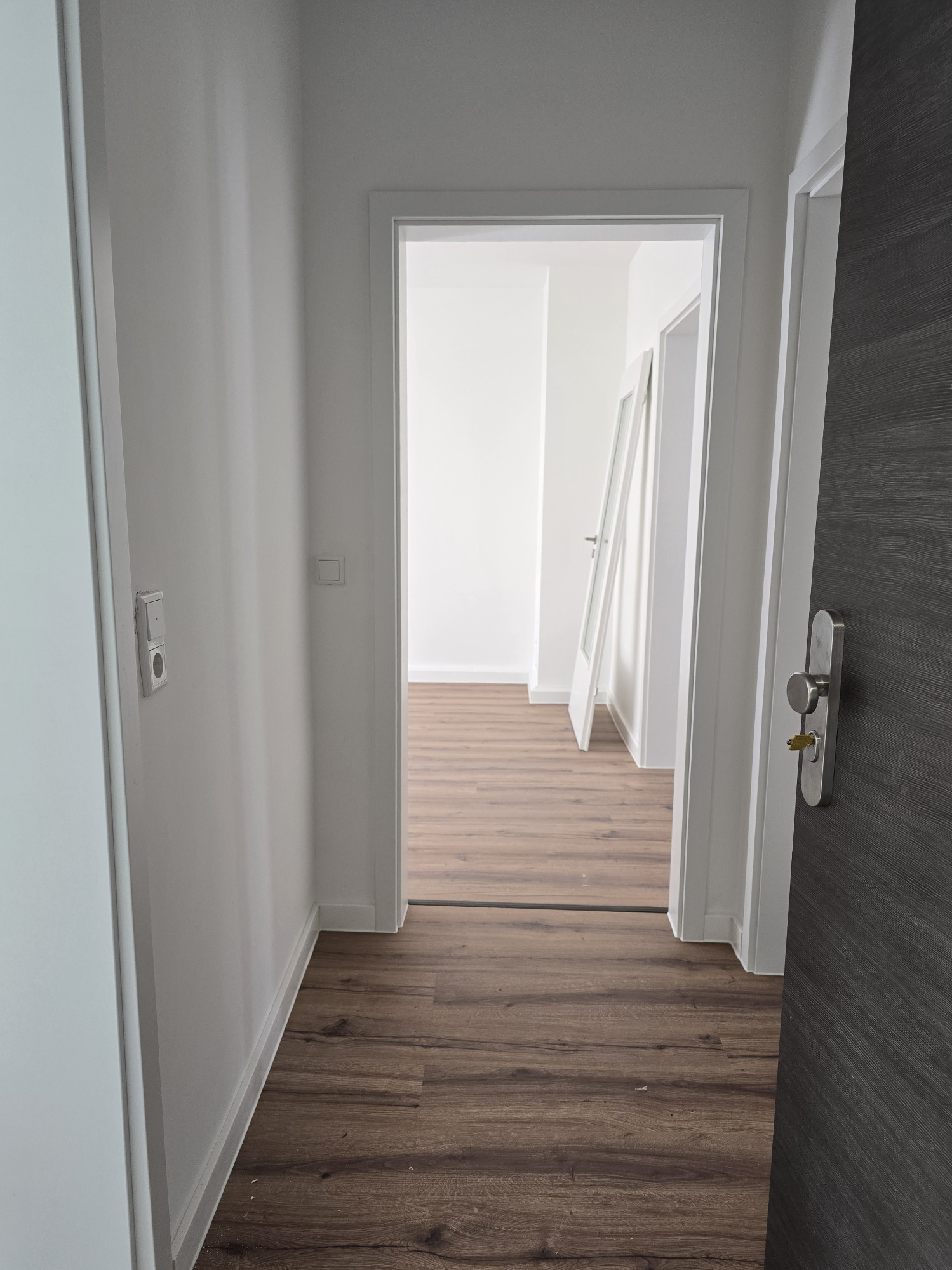 Der hochwertige Laminatboden zieht sich harmonisch durch die gesamte Wohnung und verleiht allen Räumen eine moderne, warme Atmosphäre.