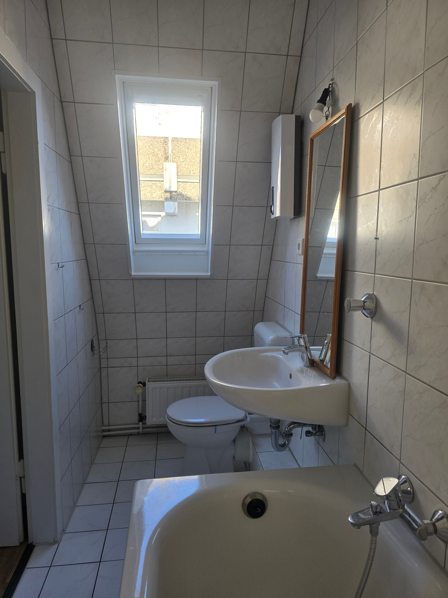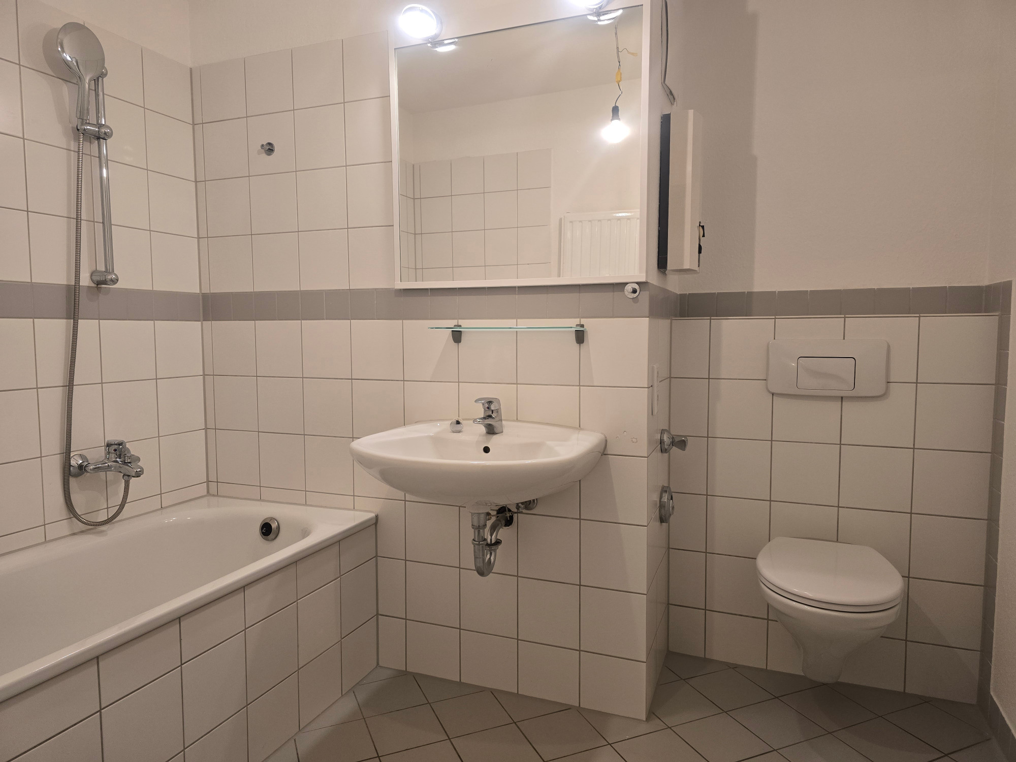 Abgerundet wird die Wohnung durch ein komfortables Badezimmer mit Badewanne, das zum Entspannen einlädt und gleichzeitig funktionalen Alltagskomfort bietet.