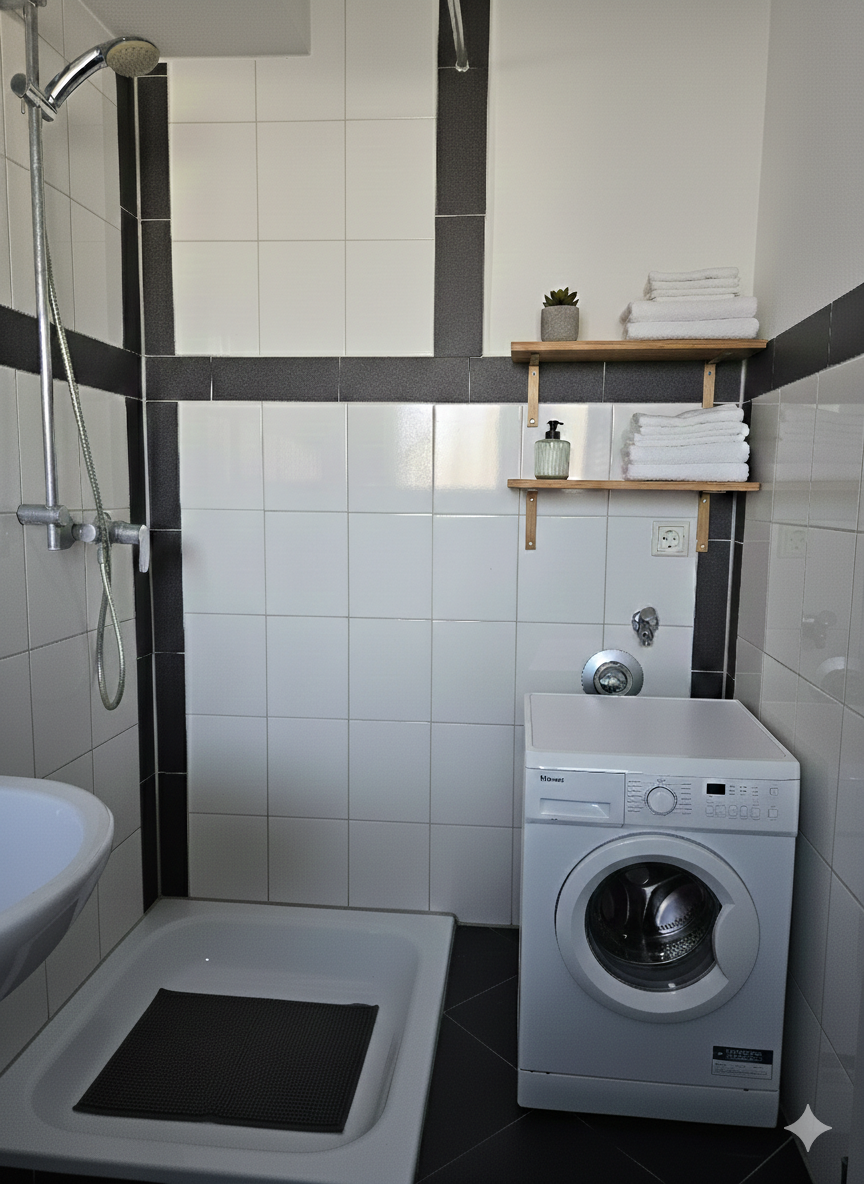 - modernes und stilvolles Duschbad mit Waschmaschinenanschluss