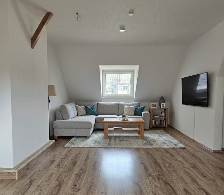 In allen Wohnräumen wurde ein hochwertiger Laminatboden verlegt, der für ein warmes und einladendes Ambiente sorgt.